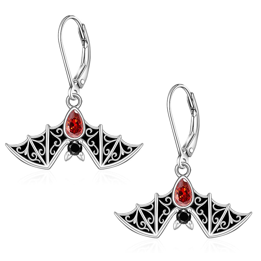 arete de murciélago de Halloween para mujer, de plata de ley, con murciélago, gótico, espeluznante, lindo, joyería de murciélagos de Halloween, Plata de ley, Circonia cúbica