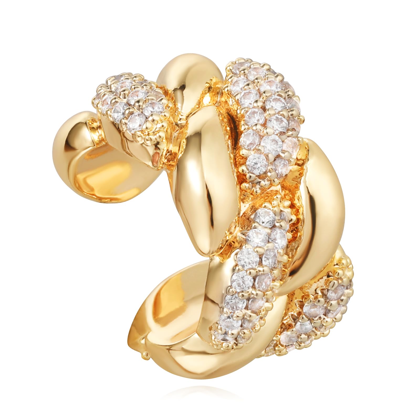 arete de oreja para mujer, sin piercing, con clip, gruesos, para cartílago, chapados en oro de 14 quilates, circonia cúbica, hipoalergénicos, regalo de joyería individual
