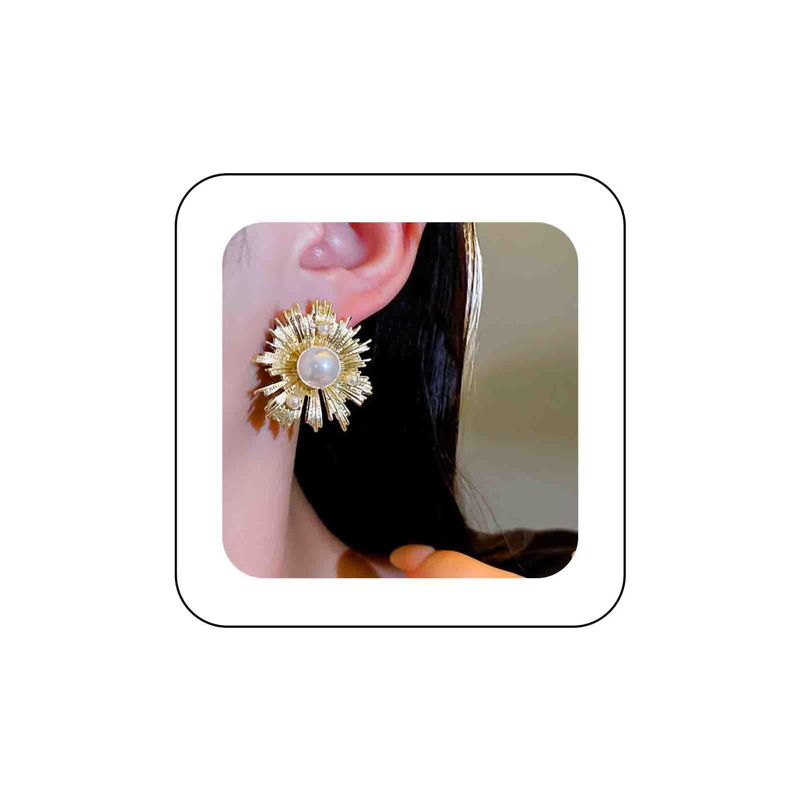 arete de perlas bohemias de oro con forma de sol y sol, aretes de metal minimalistas y geométricos de oro para mujer, Zinc, No es una piedra preciosa