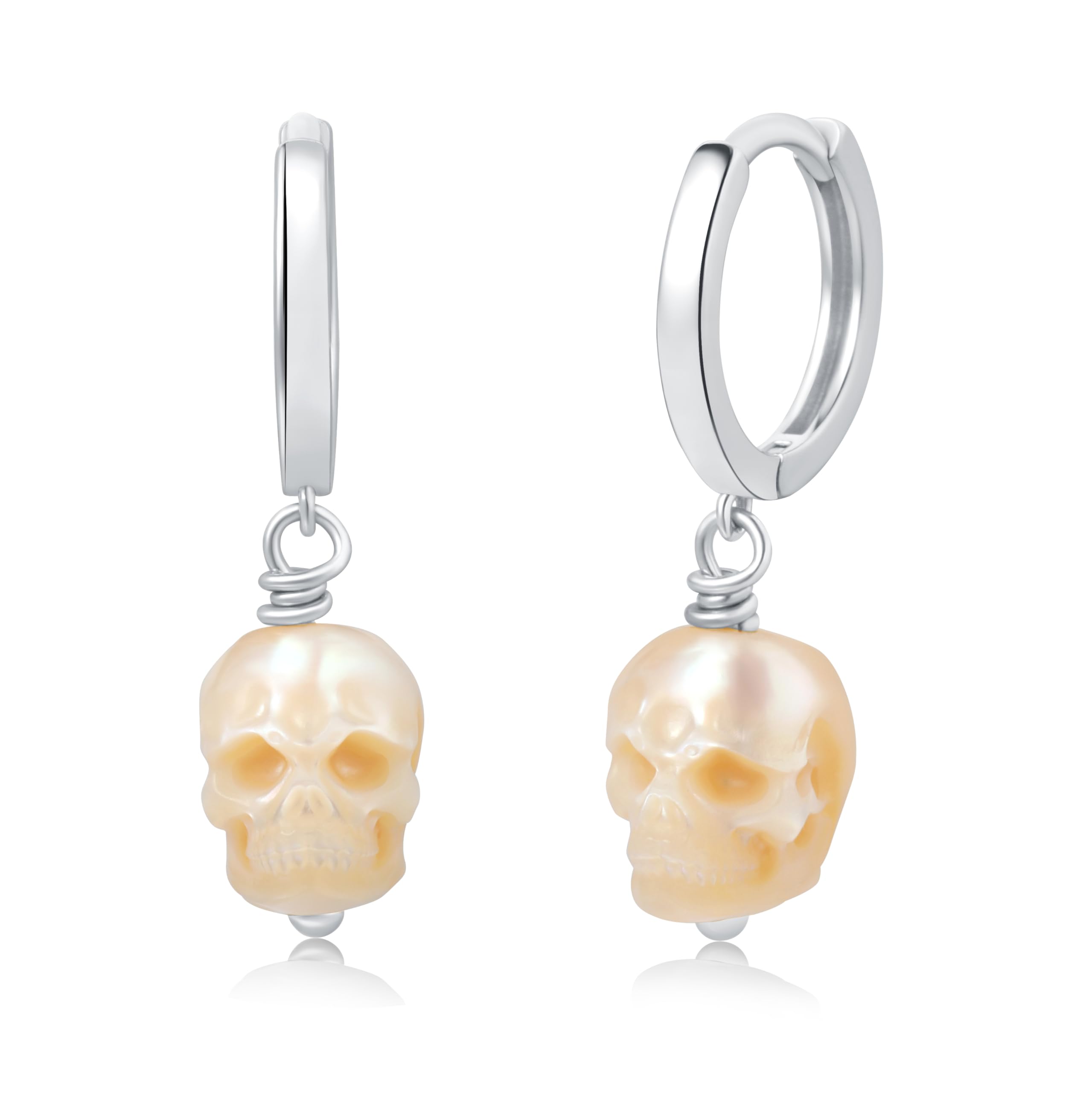 arete de plata de ley 925 con diseño de calavera gótica, perlas barrocas talladas a mano, joyería minimalista punk para mujeres y hombres, Plata de ley, Perla