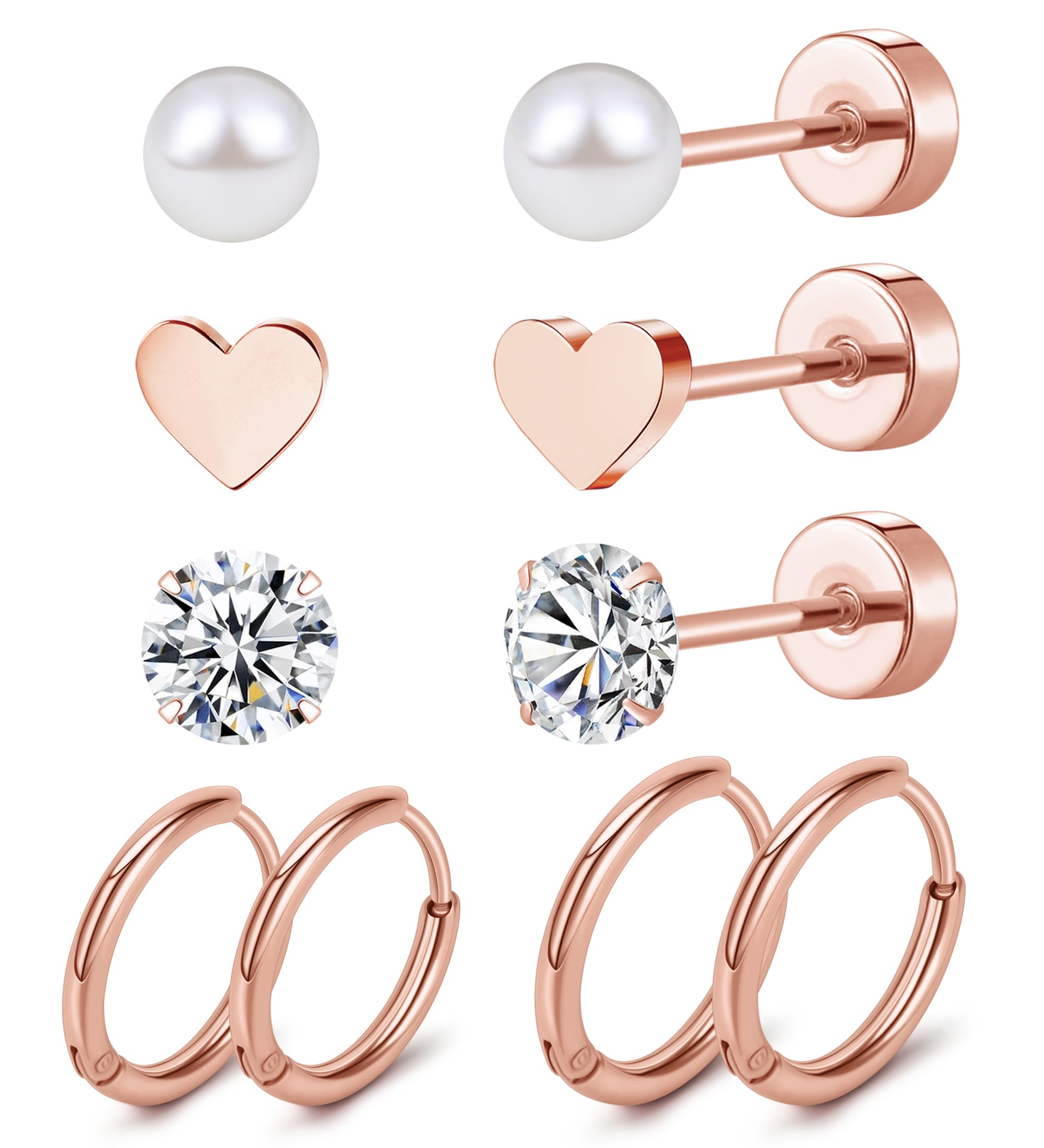 Arete de Titanio para Mujer, G23, para Orejas Sensibles, Perlas de Corazón de Circonita Cúbica, 20 g, Hipoalergénicos, con Espalda Plana