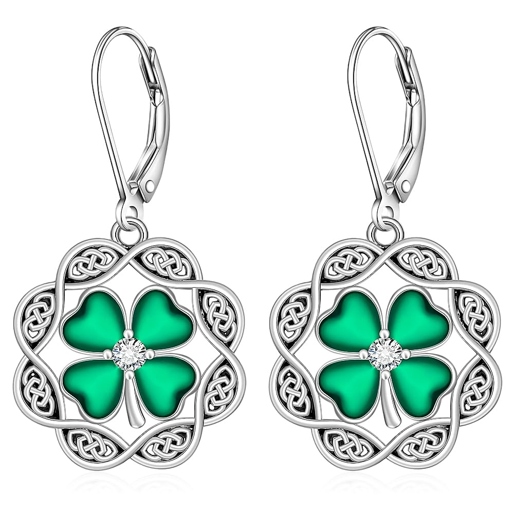 arete de trébol para mujer, celta irlandesa de cuatro hojas, de plata de ley, para el día de San Valentín, Plata de ley, Circonia cúbica