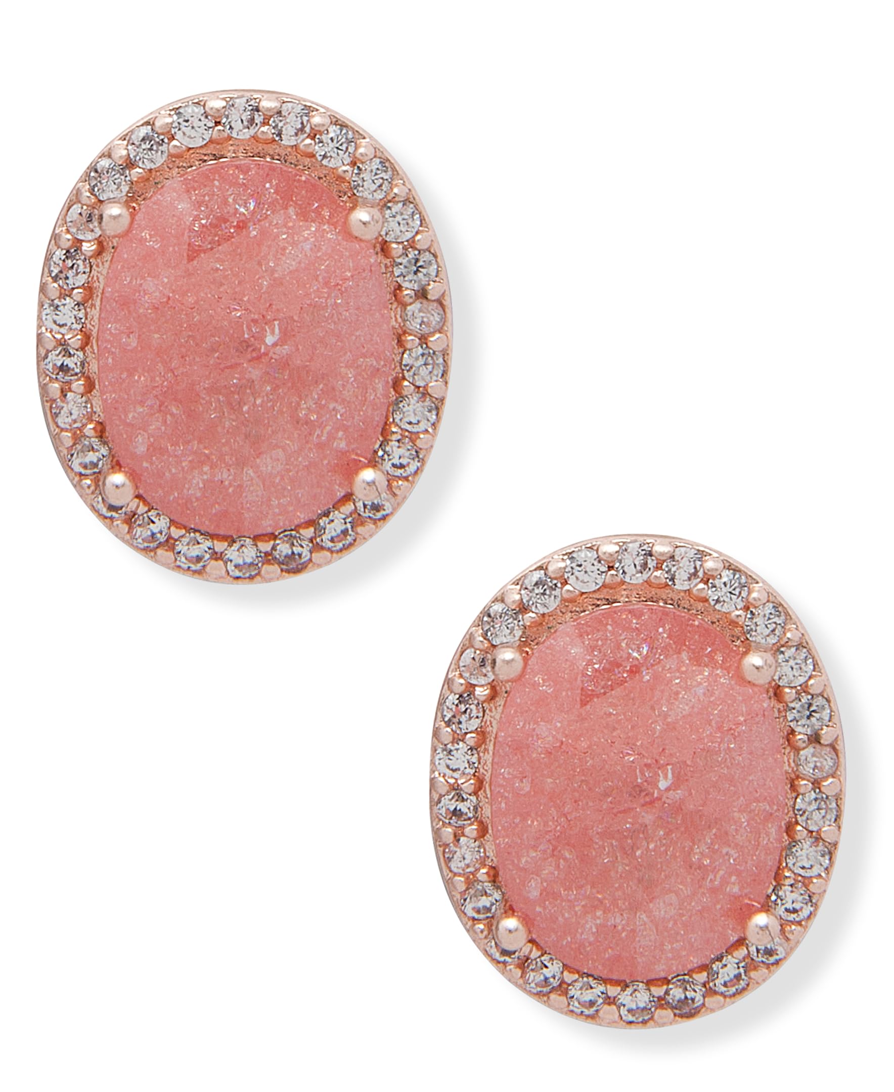 arete de tuerca de oro y coral con cierre posterior de poste, cuenta con piedra facetada de coral y detalles pavimentados, Una talla, Latón, No es una piedra preciosa