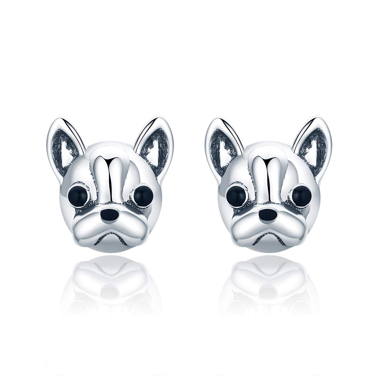 arete de tuerca de plata de ley con diseño de bulldog francés para mujer, orejas sensibles, bonitos regalos, Metal