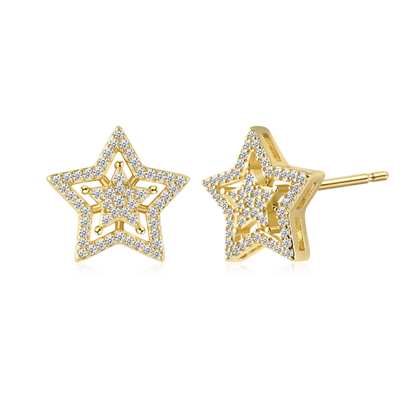arete grandes de oro con estrella para mujer con circonita cúbica, joyería de estrella, diseño grueso, estilo Y2K, Latón, No es una piedra preciosa