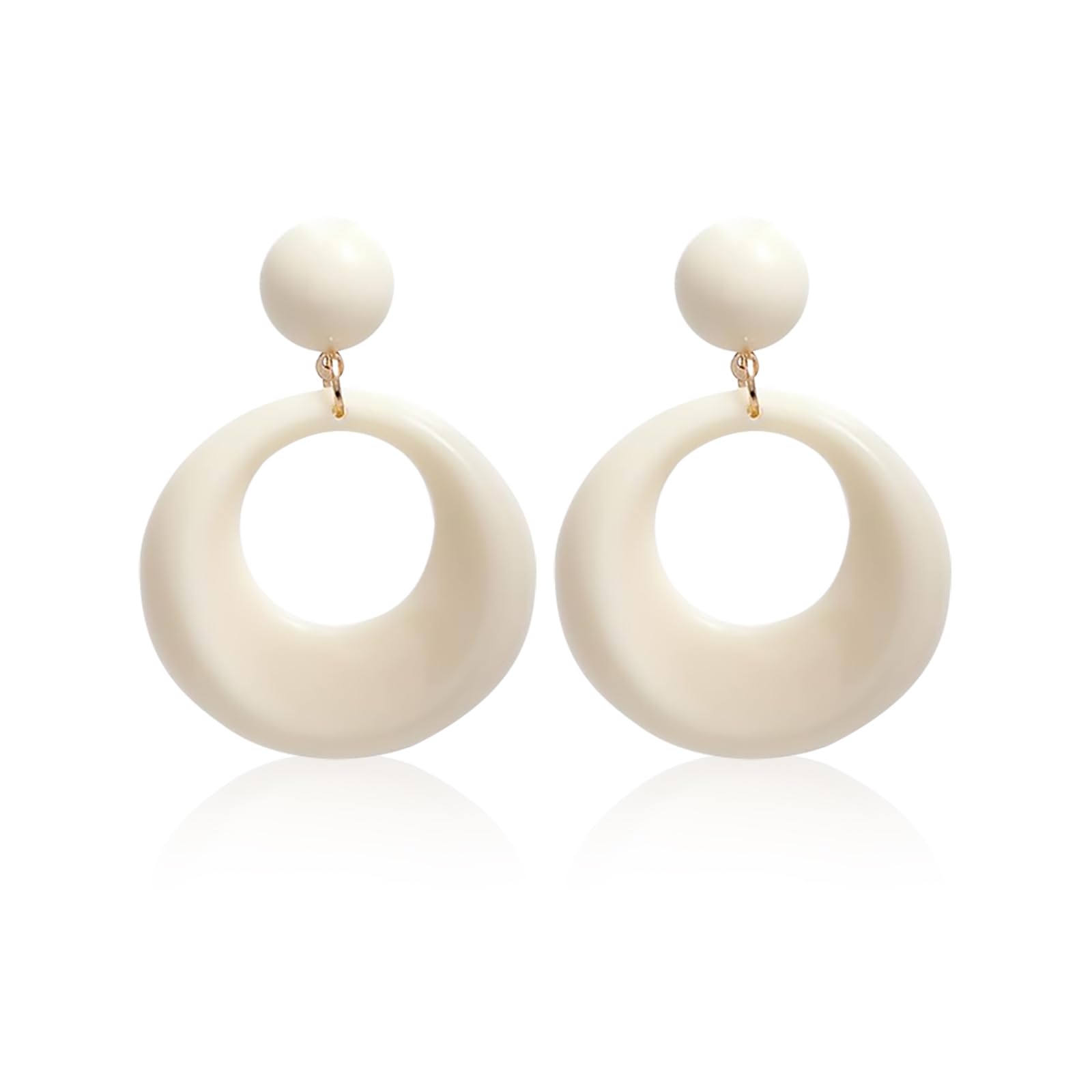 arete retro de los años 70 para mujer, aretes colgantes de círculo blanco acrílico para mujer, aretes de discoteca de los años 70, joyería de los años 60, 70, accesorios, Resina, No es