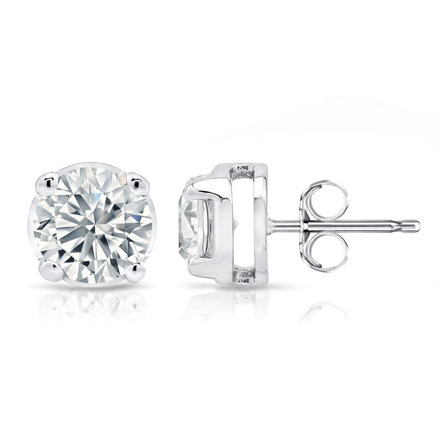 Aretes de diamante cultivados en laboratorio de 7/8 quilates para mujer, aretes de oro blanco de 14 quilates, pequeños diamantes redondos (E-F, SI1-SI2, cttw) ajuste de 4 puntas, empuje