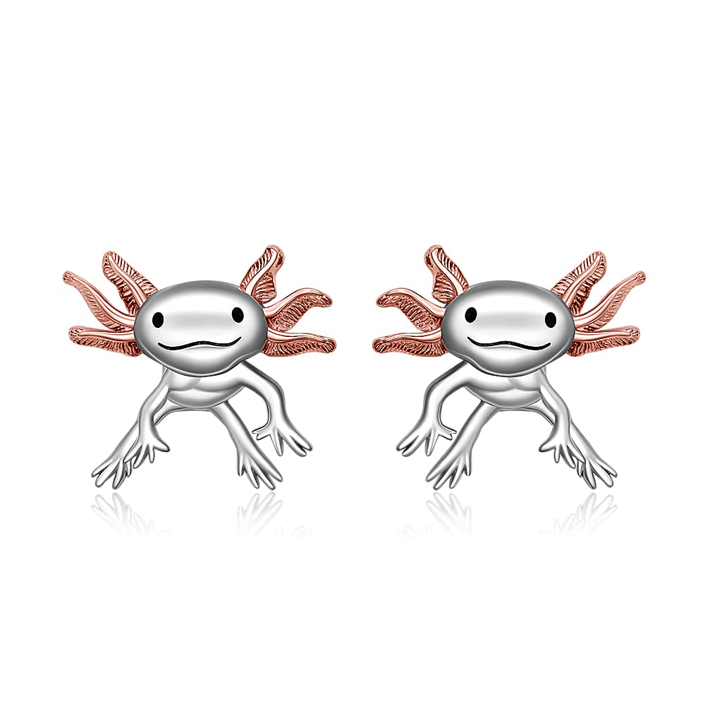 Axolotl – arete de plata de ley y oro rosa, bonitos aretes mexicanos de la amistad de Axolotl, delicados dijes únicos, aretes de tuerca de animales Kawaii, regalos de Halloween, Plata de ley, circonita