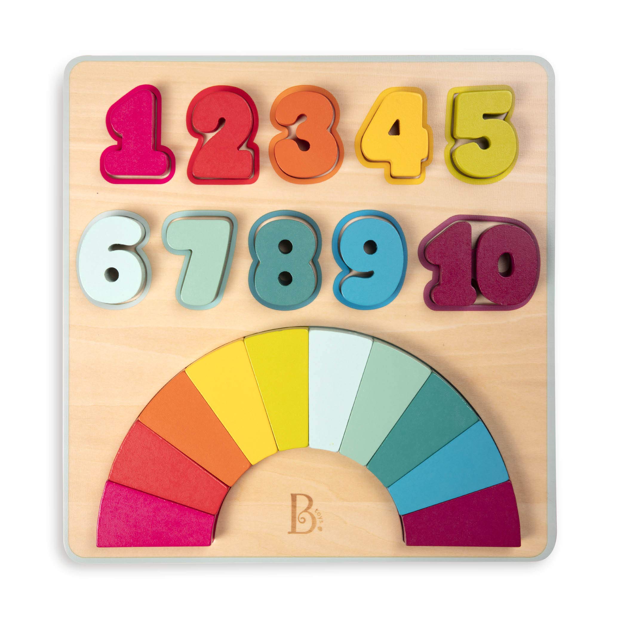 B. – Rompecabezas numérico de madera para niños – 20 piezas gruesas – 18 meses + – Aprende a contar con Arcoíris