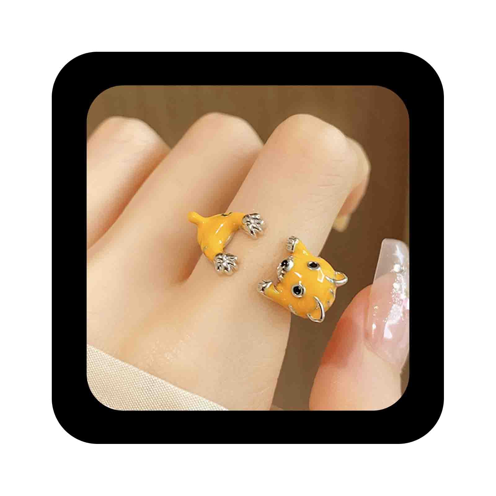 Bonito anillo de zorro esmaltado ajustable abierto con dibujos animados, bonito anillo de zorro de dibujos animados, anillo de dedo de zorro, joyería para mujer