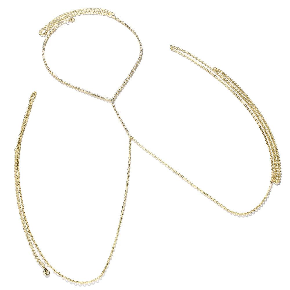 Cadenas corporales de diamantes de imitación dorados para mujer, gargantilla sexy de diamantes de imitación, brasier de bikini cruzado, cadena de pecho, playa, discoteca, joyería corporal,