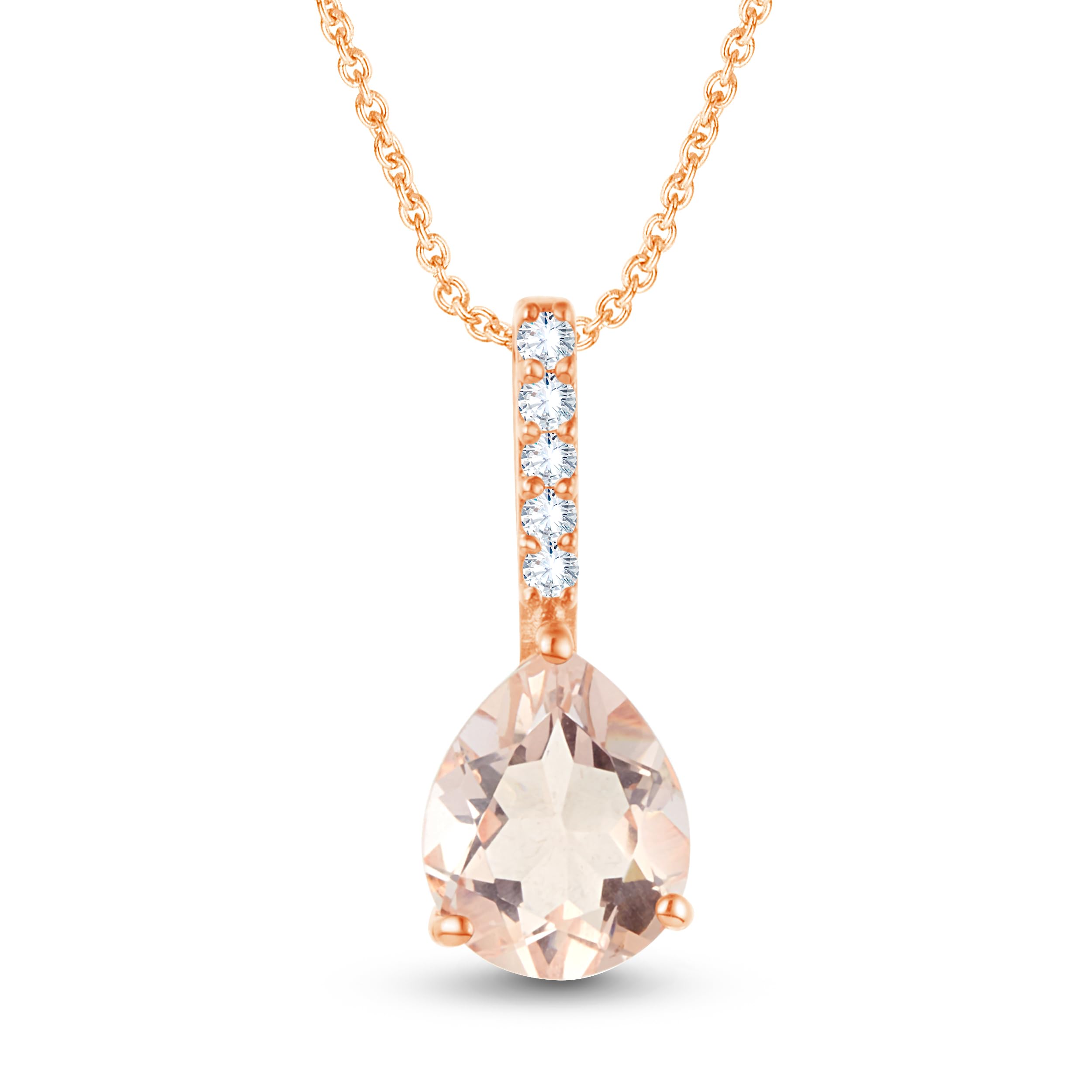 Colgante de boda y compromiso con forma de pera de 2,20 quilates con forma de pera de melocotón y diamante con cadena de 45,7 cm en plata 925 con acabado en oro rosa de 14 quilates,
