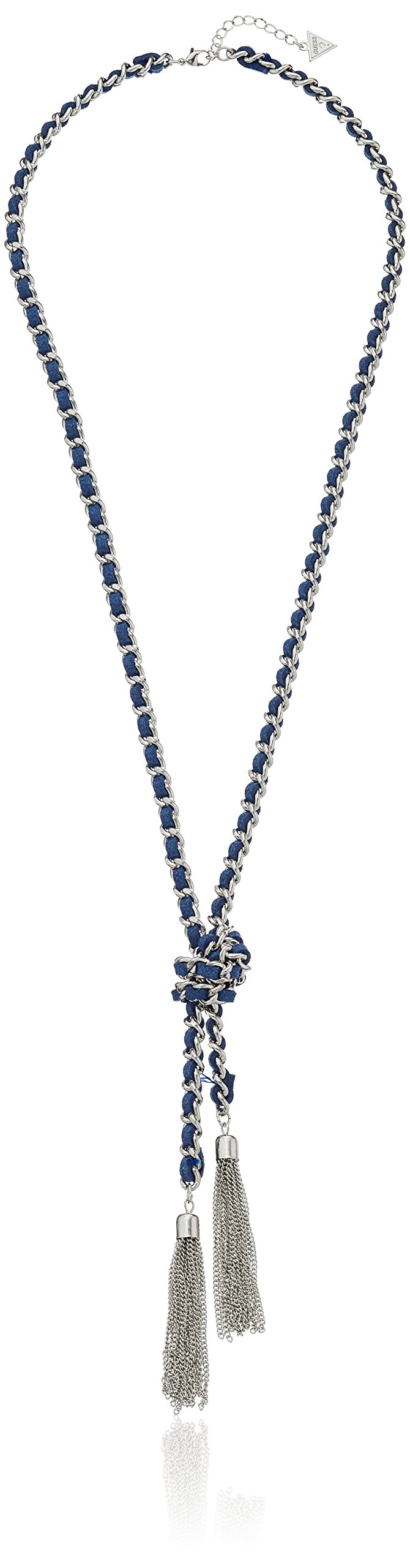 Collar Basic de Plata y Mezclilla con Borla Tejida en Forma de Y, 30 Pulgadas + Extensor de 2 Pulgadas, Una Talla, Metal