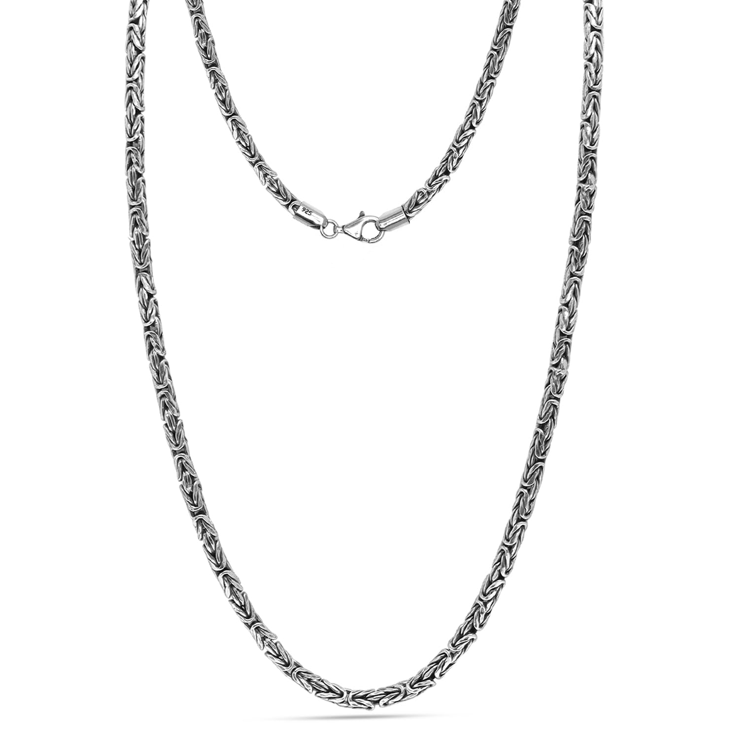 Collar bizantino de plata de ley 925 maciza oxidada | Collar de cadena de eslabones bizantinos italiano hecho a mano de 2,5 mm para hombres y mujeres (18, 20, 22, 24 pulgadas), 925 fabricado
