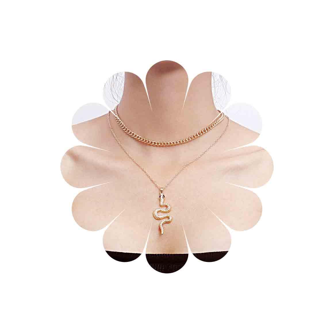 Collar con colgante de serpiente en capas estilo bohemio, estilo clásico, con cadena de serpiente dorada, collar ajustable de serpiente de animales, joyería para mujer, Zinc, Sin piedra