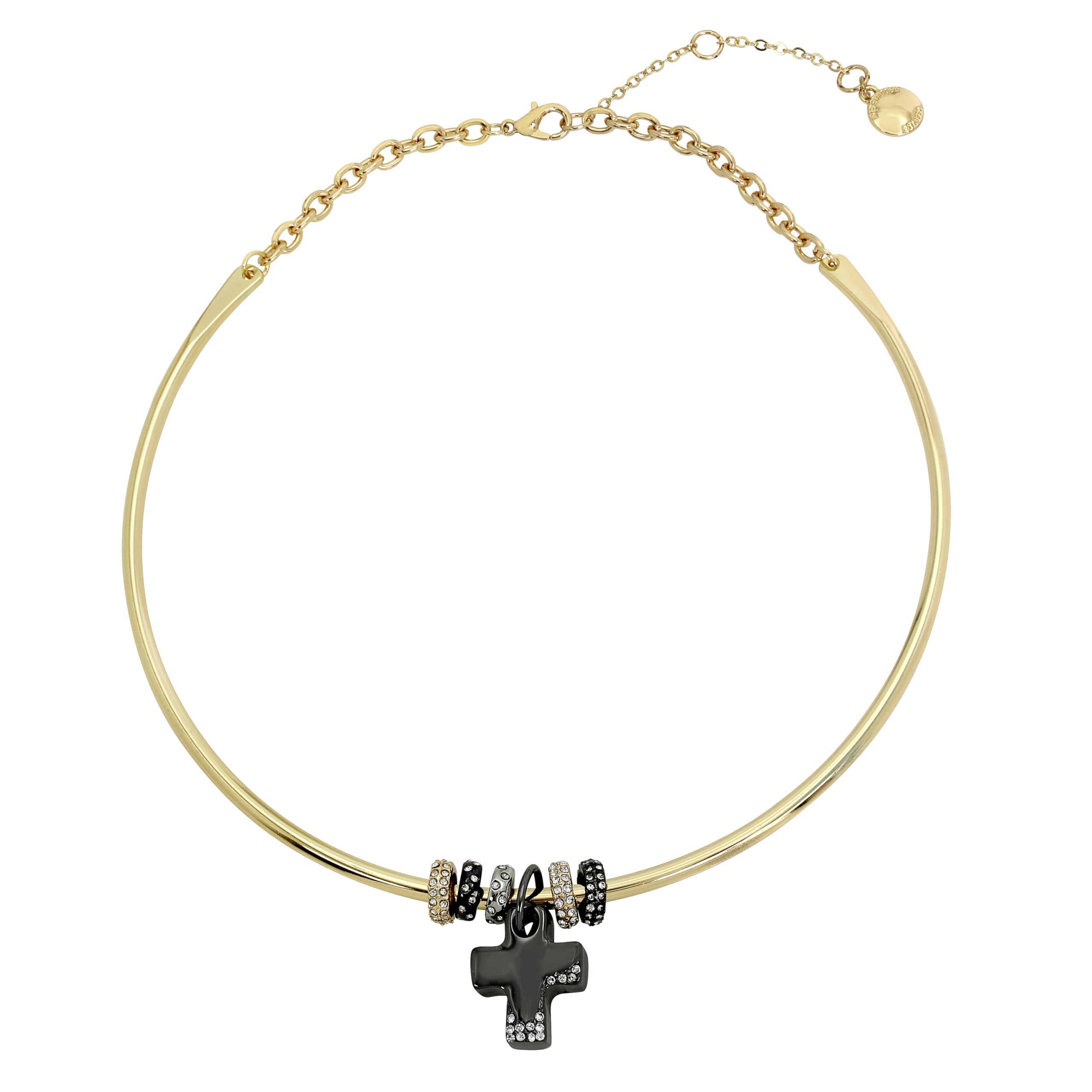 Collar con dije de cruz hinchada para mujer, Una talla, Metal Vidrio, Sin piedra preciosa