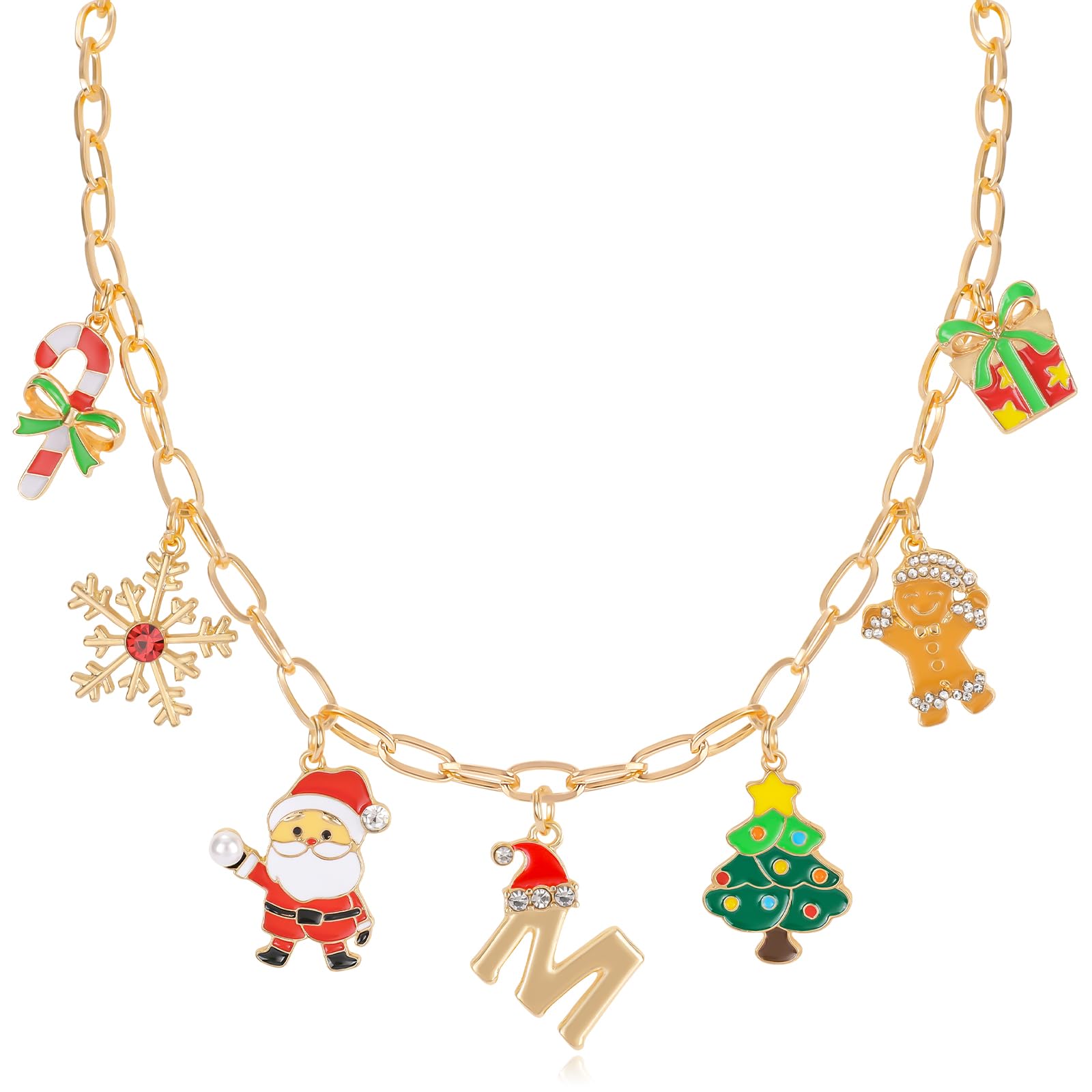 Collar con dije de letra inicial de Navidad para mujer, bastones de caramelo, copos de nieve, Papá Noel, árbol de Navidad, pan de jengibre, caja de regalo, collar colorido para regalos de