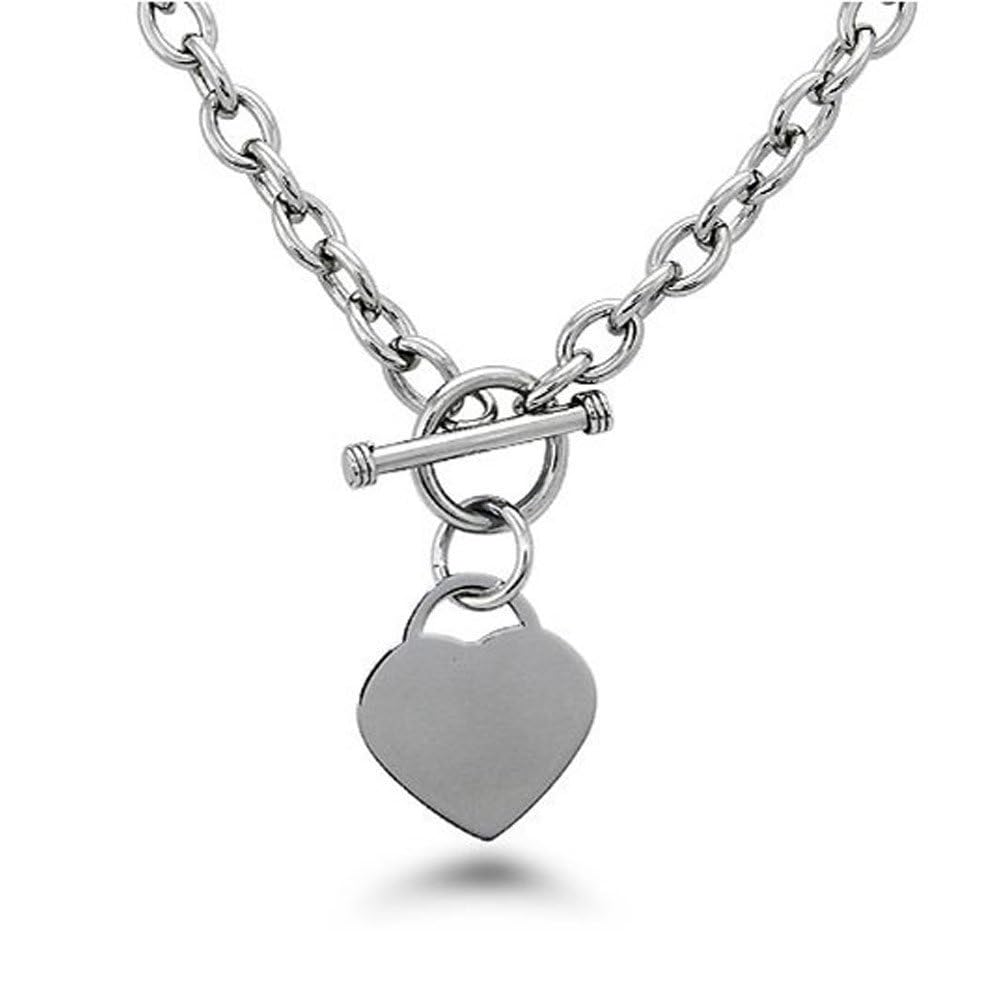 Collar de cadena de acero inoxidable pulido con colgante de corazón con cierre de palanca, plata (longitud: 45,7 cm)