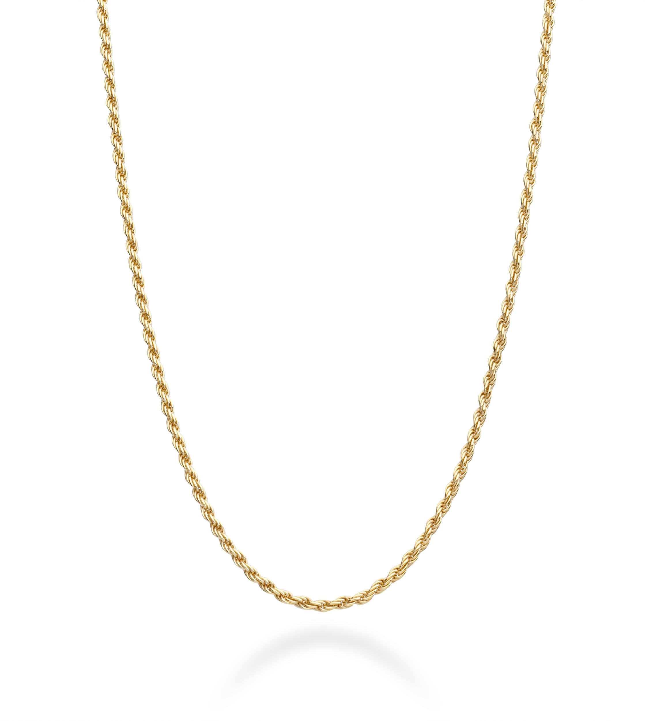 Collar de cadena de cuerda trenzada de oro italiano de 18 quilates sobre plata de ley 925 fina de 1,5 mm con corte de diamante para mujer, fabricado en Italia