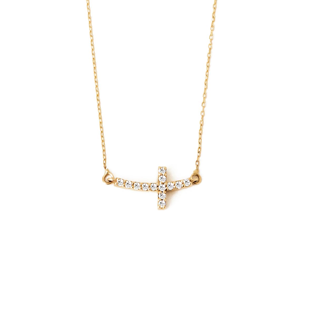 Collar de cruz curvada de diamantes en oro macizo de 14 quilates | Collar de cruz curvada de oro de 14 quilates para mujer, Oro, Diamante