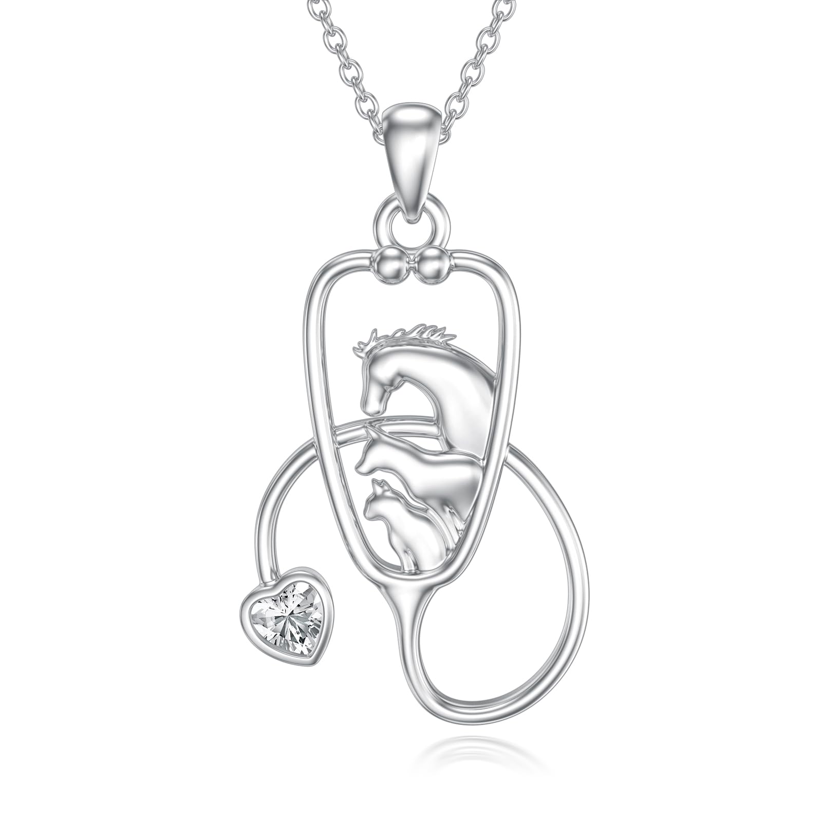 Collar de estetoscopio veterinario de plata de ley 925 con silueta de animal, joyería veterinaria de enfermera, regalos para veterinaria, enfermera, estudiantes de medicina, regalos