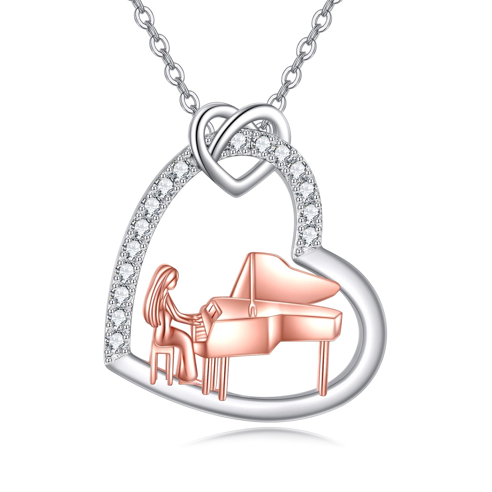 Collar de música para amantes de la música, plata de ley, oro rosa, con colgante de corazón de piano, joyería de piano, regalos de cumpleaños para mujeres