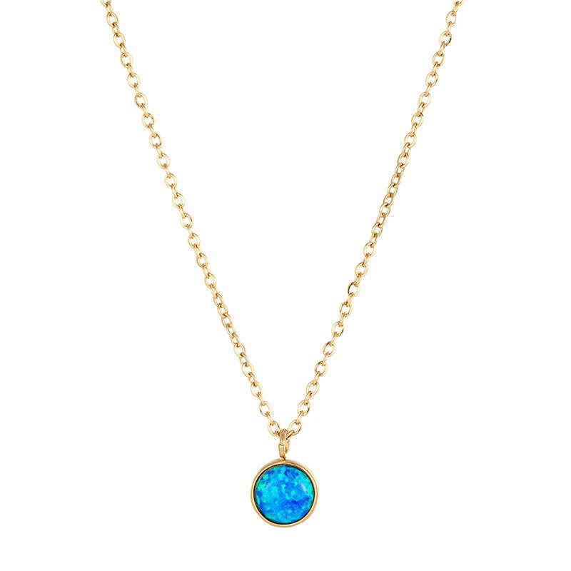 Collar De Ópalo Azul Chapado En Oro For Mujer,Collar De Piedra Natal con Juego De Colores De Ópalo De Titanio
