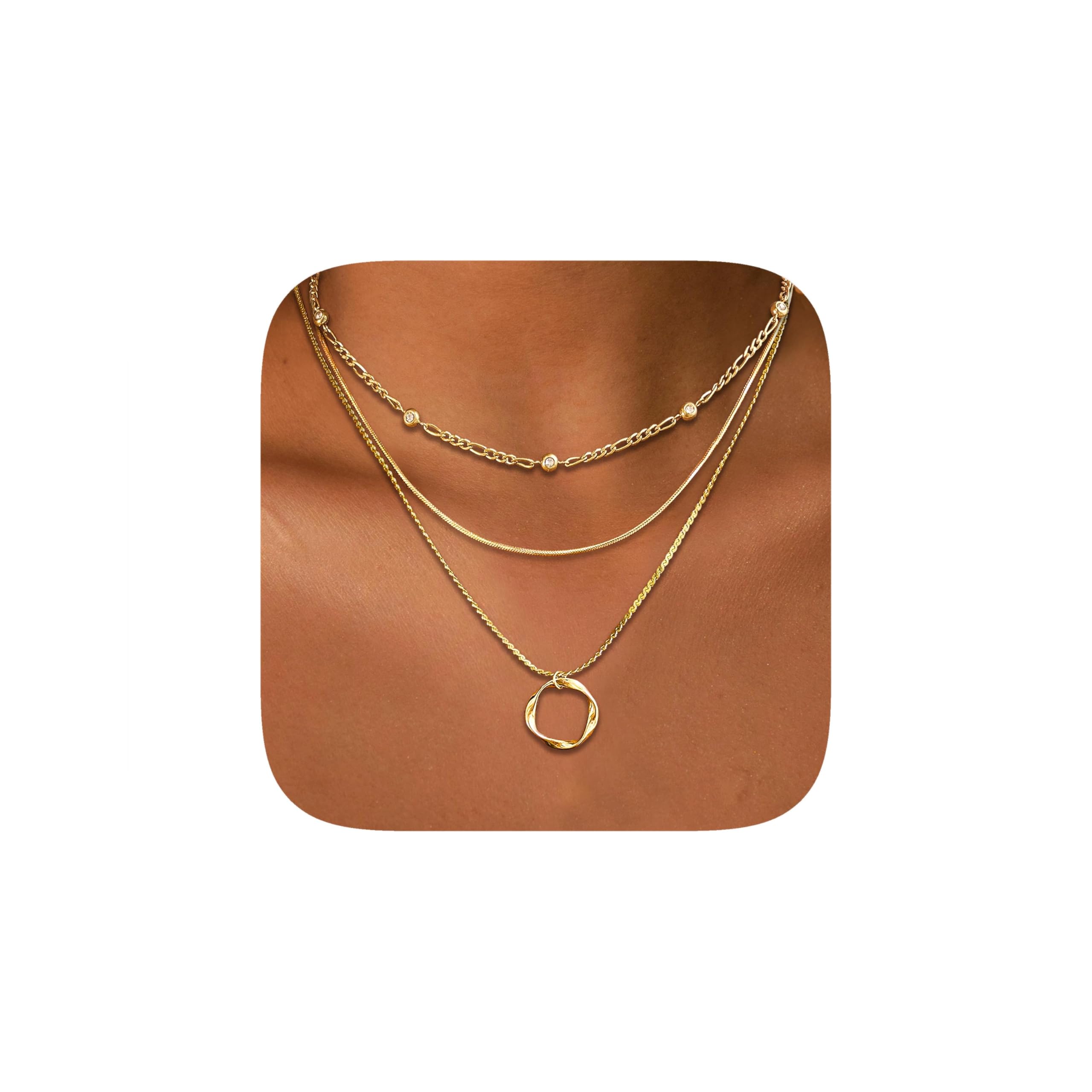 Collar de oro en capas para mujeres, collar de oro dainty diamante dorado Figaro de 14k, collar de cadena colgante en forma de chevron, joyas de moda de oro para mujeres