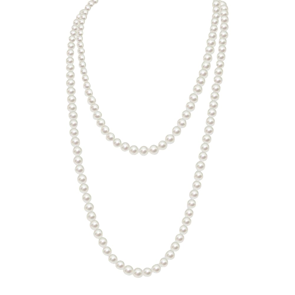 Collar de perlas de imitación de 150 cm de largo, collar de perlas artificiales de imitación blancas de los años 20, collar de perlas artificiales con abalorio para mujer, 150cm, Perla, Sin piedra
