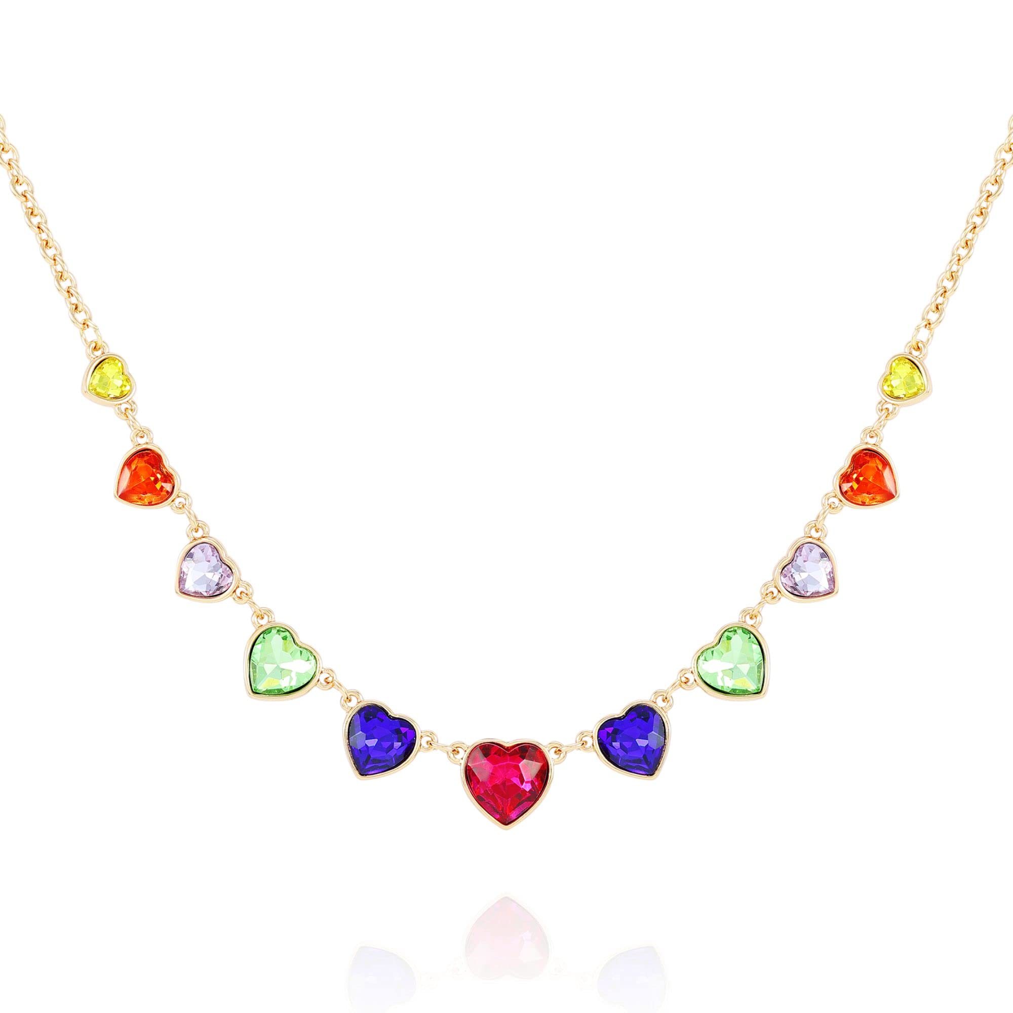 Collar de piedra de vidrio arcoíris dorado para mujer, Una talla, Metal, Piedra de vidrio