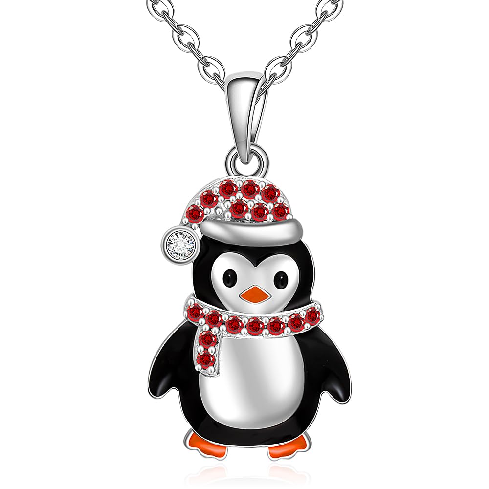 Collar de pingüino de Navidad para mujer, plata de ley 925, colgante de pingüino, lindo regalo de cumpleaños y día festivo, Plata esterlina, Circonia cúbica