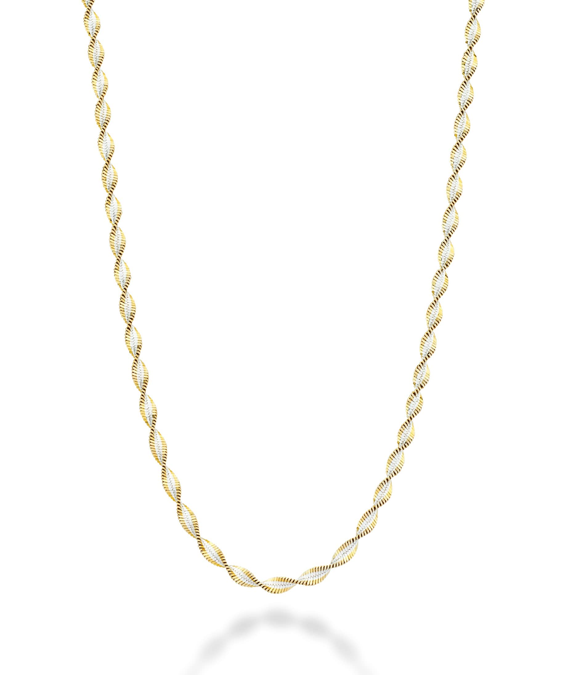 Collar de plata de ley 925 con cadena de espiga trenzada de 2,5 mm en dos tonos para mujer, fabricado en Italia