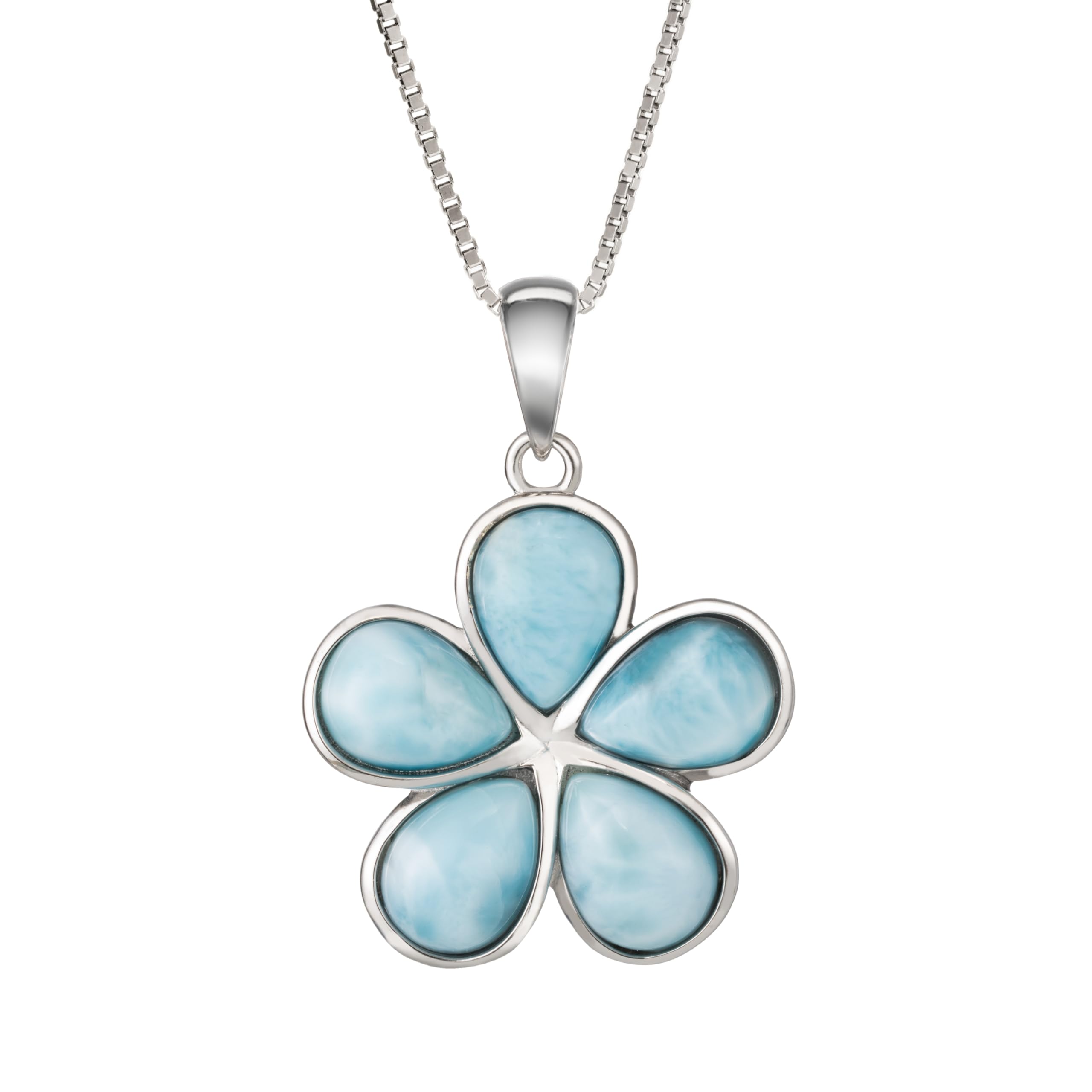 Collar de plata de ley con colgante de flor de fontanería de larimar natural con cadena de caja de 45,7 cm, sin níquel, hipoalergénico para pieles sensibles, caja de regalo