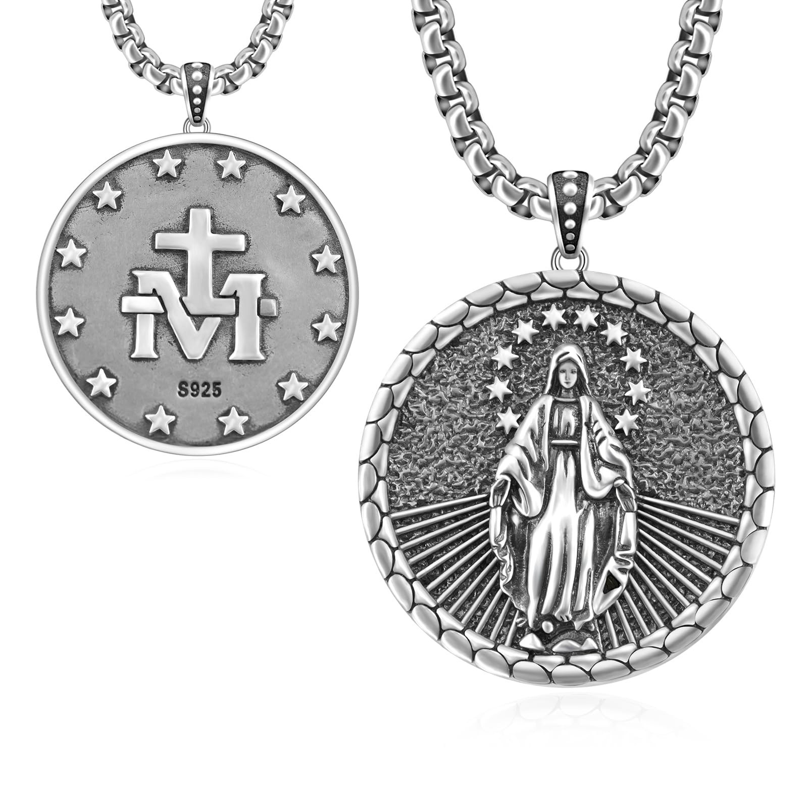 Collar de plata de ley con medalla milagrosa de Virgen María, medallas milagrosas católicas para hombres y mujeres, Plata esterlina, Sin piedra preciosa