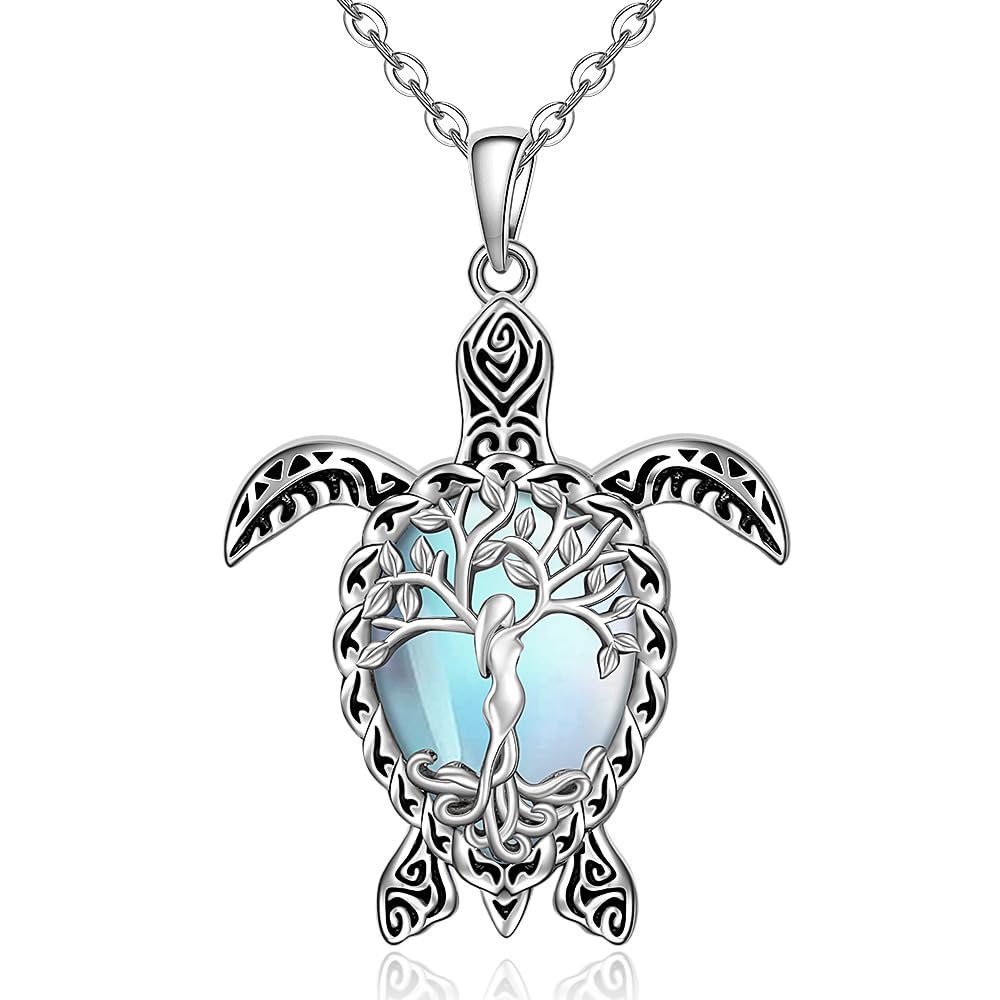 Collar de tortuga de Fenthring para mujer, piedra lunar, árbol de la vida, collar de tortuga marina, colgante de tortugas, joyería de plata de ley para cumpleaños, día de la madre, Plata esterlina,