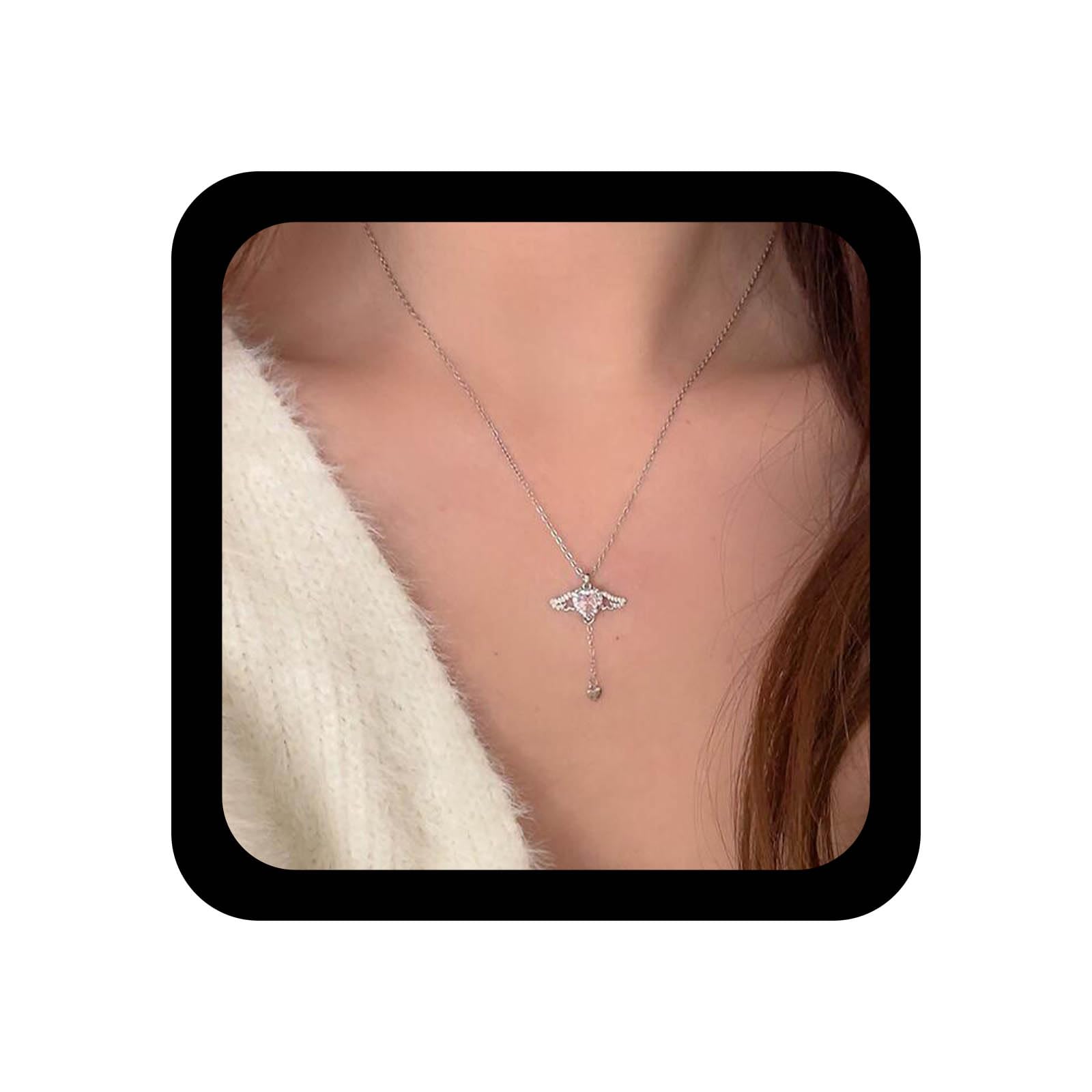 Collar de vidrio de corazón bohemio con forma de corazón de plata y diamantes de imitación, collar con colgante de alas de corazón rosa y circonita cúbica brillante para mujer, Zinc, Sin