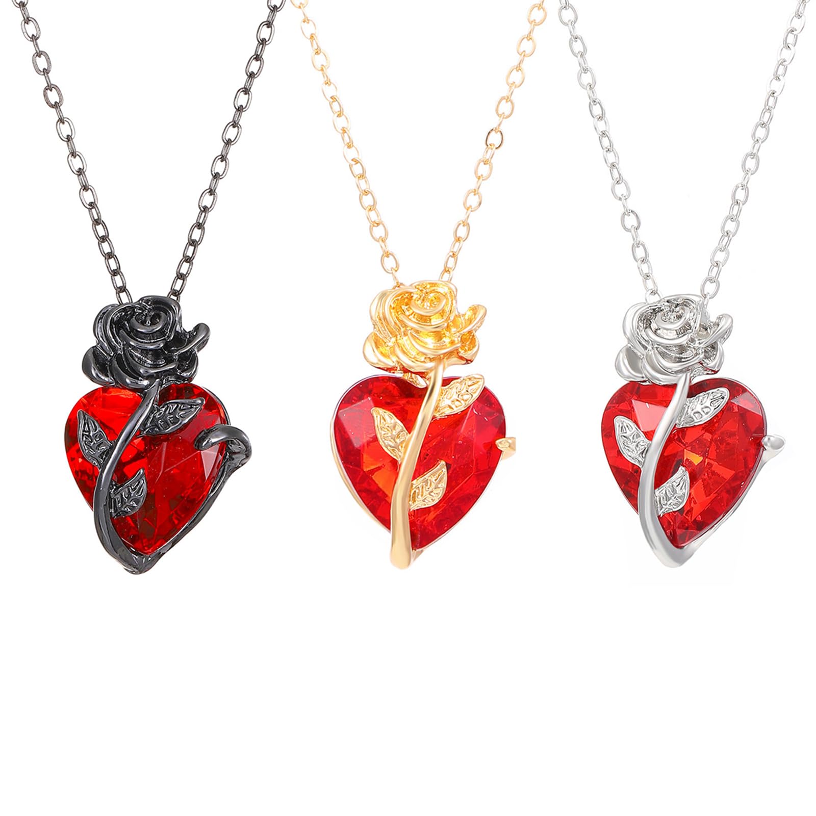 Collar gótico con colgante de corazón de rosa, collar de rosa negra, collar gótico emo grunge para mujeres y hombres, collar gótico para mujeres, collares largos de corazón gótico, collar de