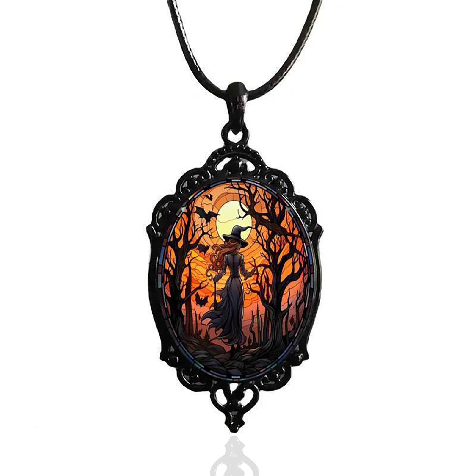 Collar gótico de murciélago de bruja para mujer, collar con colgante de cruz de cuervo rojo de Halloween, collar clásico de bruja negra con relieve de rosa de bruja negra de Halloween, collar de