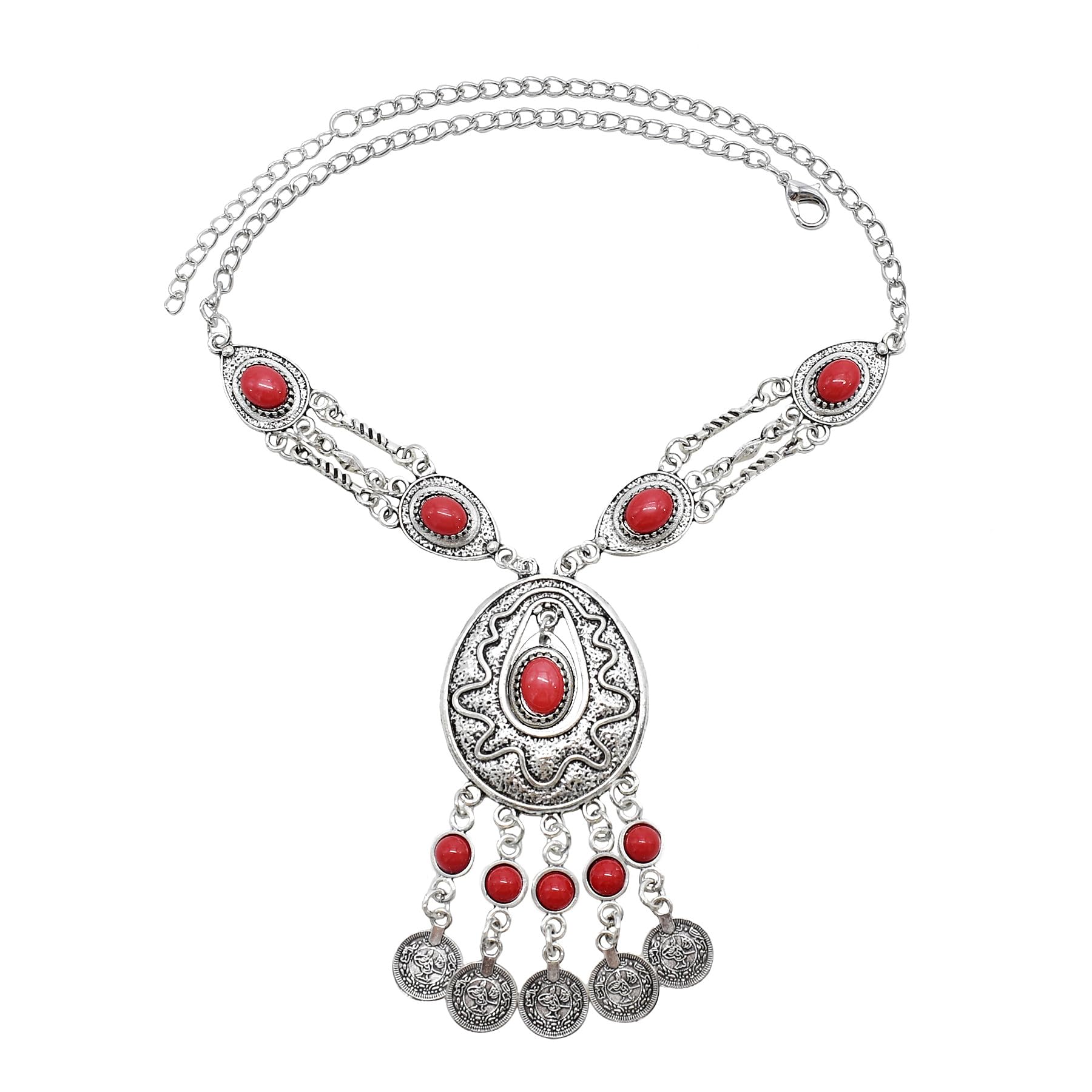 Collar grueso tribal étnico bohemio de revestimiento múltiple con borla larga turquesa cadena de cuello retro con piedras preciosas exageradas accesorios para disfraz para mujer