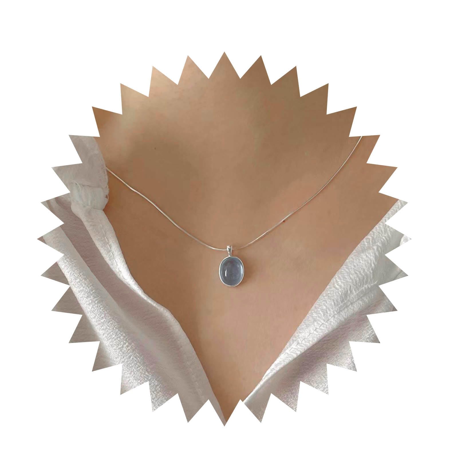 Collar ovalado de piedra lunar azul, collar con colgante de piedra aguamarina, joyería para mujer, Zinc, Sin piedra