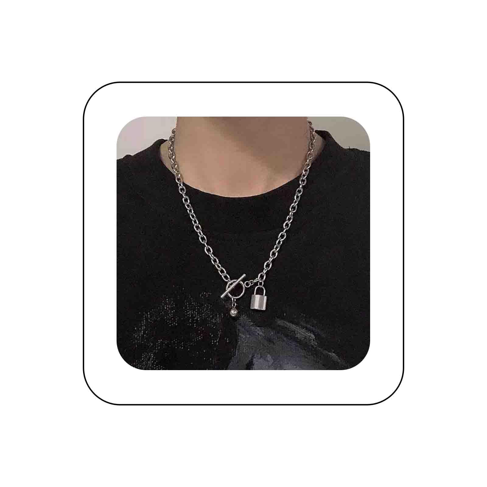 Collar punk con cerradura de plata y cadena de eslabones de metal, collar con cierre de círculo, collar con llave, collar con colgante y joyería para mujer, Zinc, Sin piedra preciosa