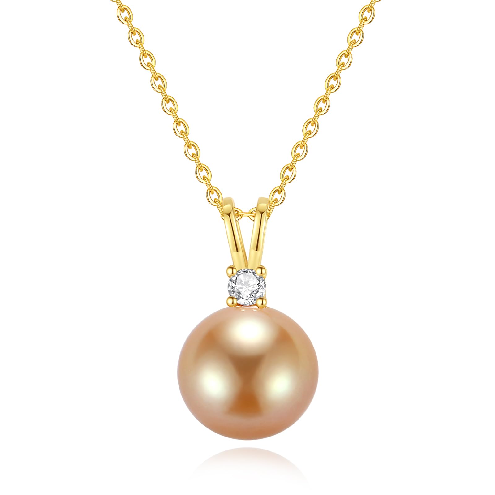 Collar redondo de perlas doradas de 11 a 12 mm para mujer, plata de ley chapada en oro de 18 quilates con colgante y cadena de perlas cultivadas en agua salada, extensor ajustable de 18 + 2