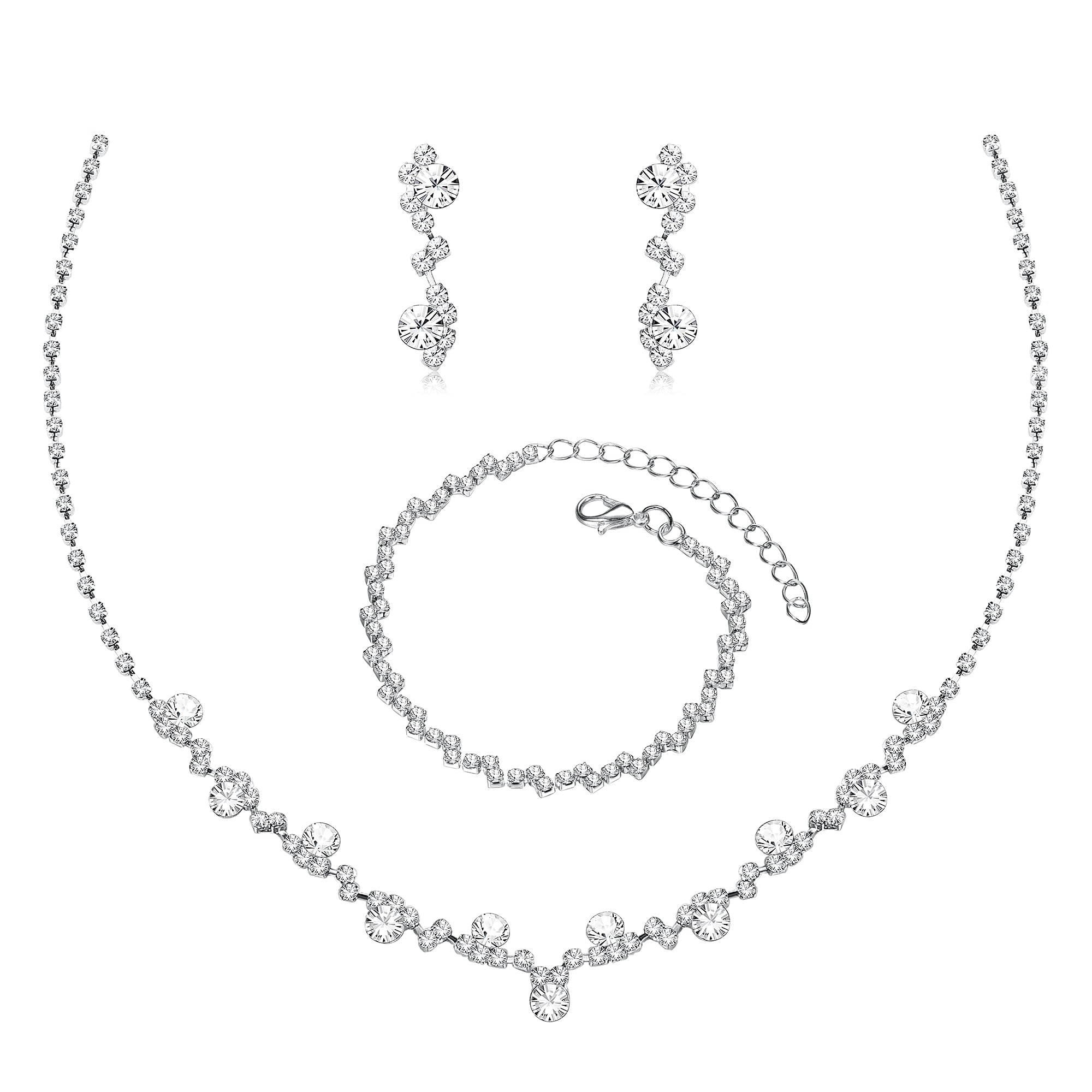 Collar y arete de plata de vidrio con pulsera de vidrio para mujer, arete colgantes de lágrima, collar de diamantes de imitación, pulsera para novia, dama de honor, boda, fiesta, conjuntos de joyas