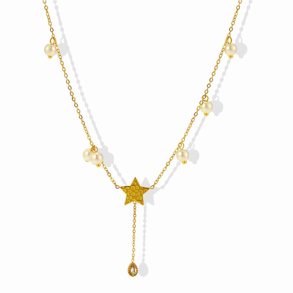 Collares de perlas de oro para mujer, collar de estrella delicado chapado en oro de 14 quilates, collar en Y, gargantilla para mujer, joyería ajustable, Acero inoxidable, Sin piedra preciosa