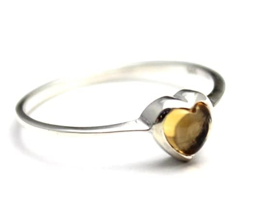 COSUMOSU – Anillo fino de plata de ley 925 con forma de corazón y citrino, color amarillo, Plata de ley, Citrino