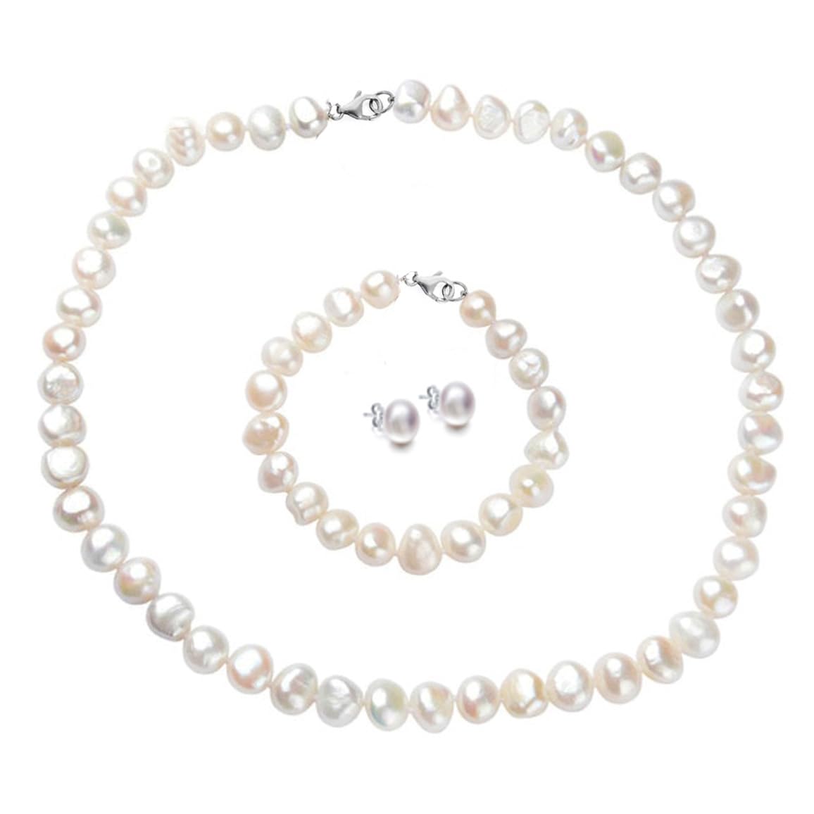 Elegante juego de collar de perlas barrocas blancas de 9 a 10 mm para mujeres y hombres | Juego de regalo de joyería de hebras de perlas, Perla, Perla