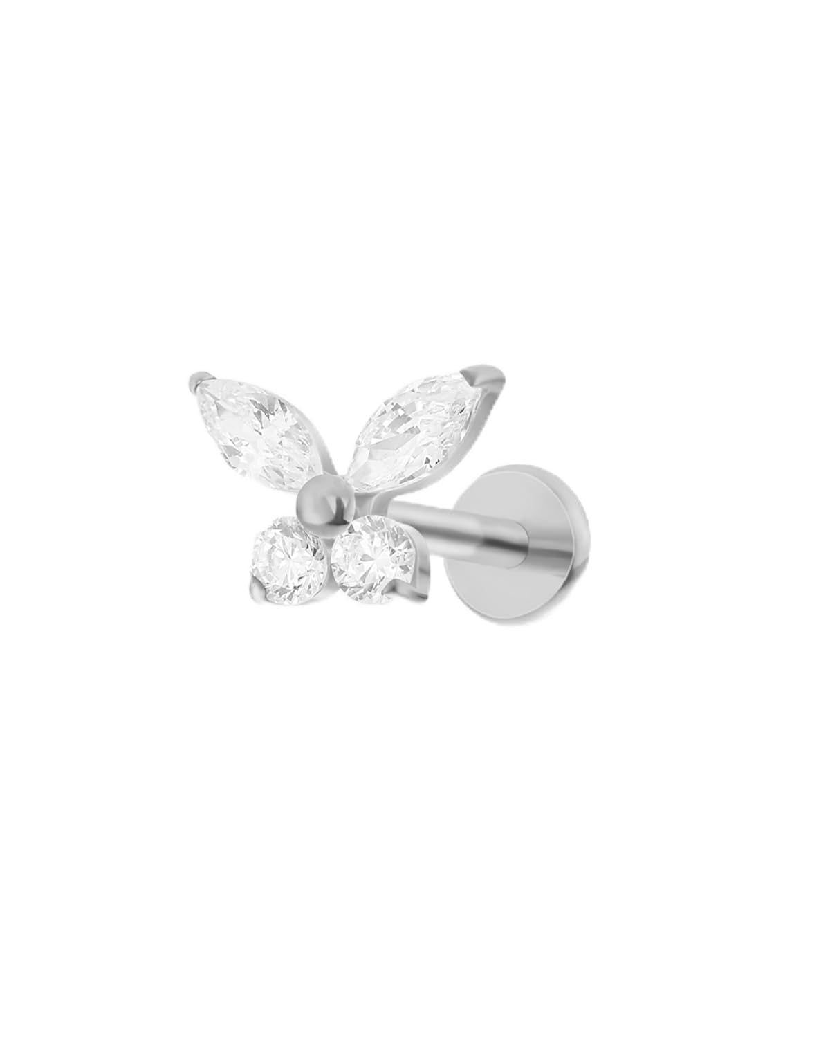 Fashtour G23 Pure Titanium Flat Back Earring, F136 Implant Grade Titanium Jewelry for Sensitive Ear, Cubic Zirconia Titanium Screw Back Piercing for Cartilage, Small Stud(1pcs) Earrings(Silver-Flower)