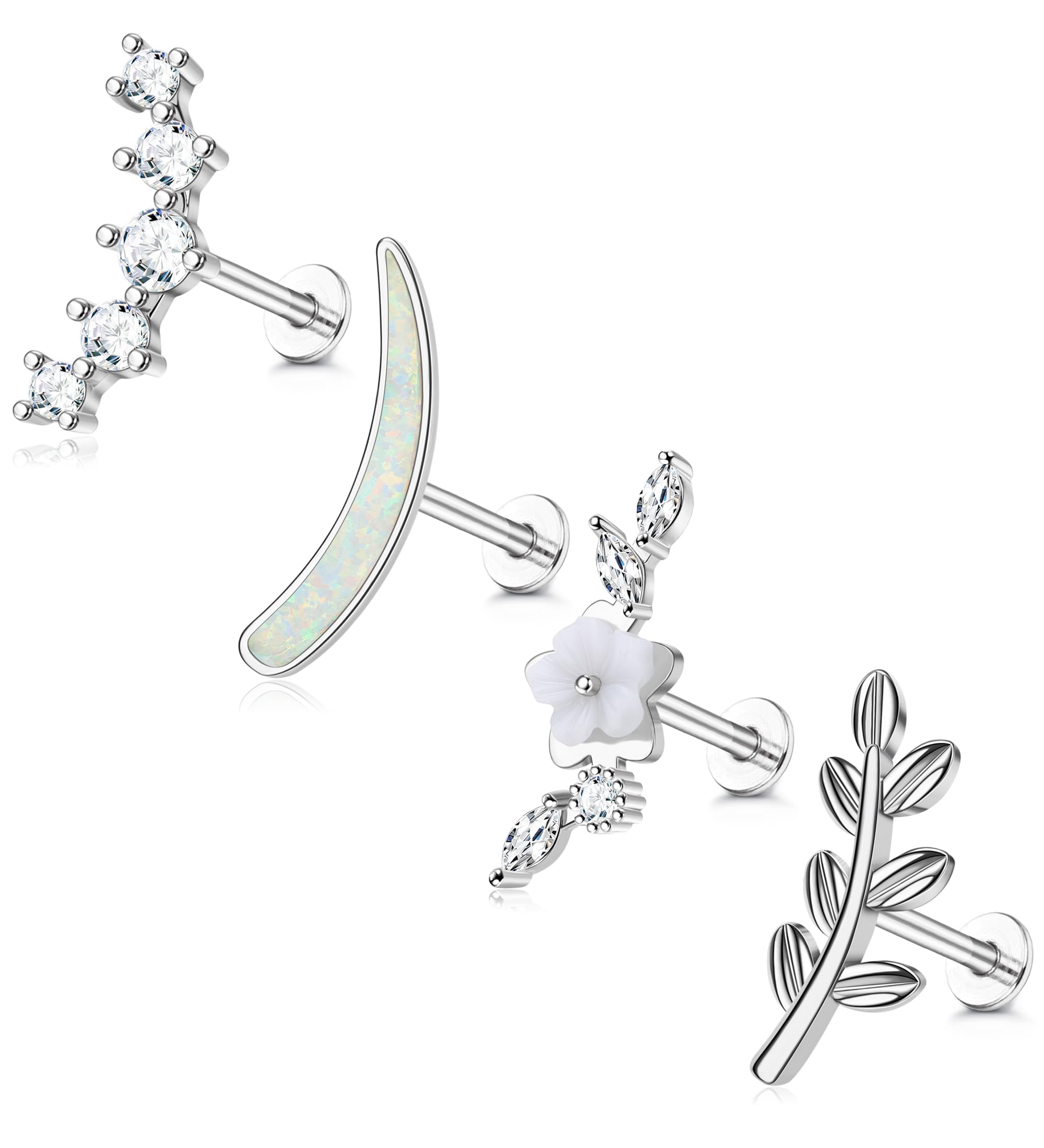 G23 – arete de cartílago de titanio para mujer, de titanio puro, de 16 g, con parte trasera plana, para cartílago sensible, ópalo de circonita cúbica, con rosca interna, para piercing de