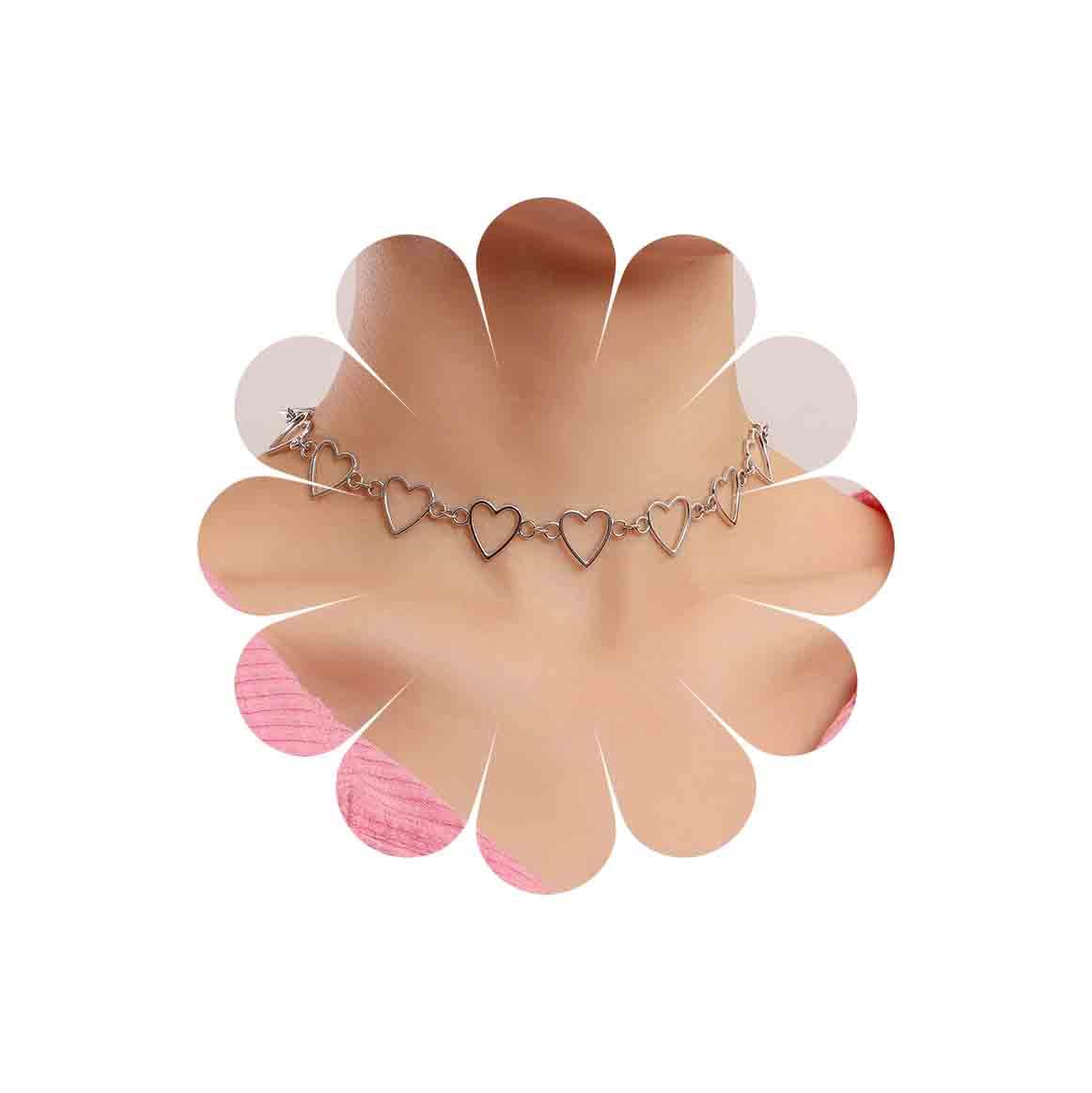 Gargantilla estilo bohemio con forma de corazón hueco, collar de plata con forma de corazón gótico para mujer, Zinc, Sin piedra preciosa