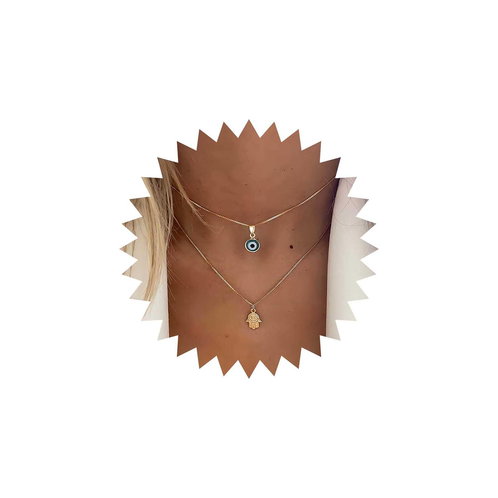 Gargantilla gótica en capas con colgante de Hamsa, collar de oro con forma de ojo de suerte, collar de ojo turco, collar de joyería para mujer, Zinc, Sin piedra preciosa